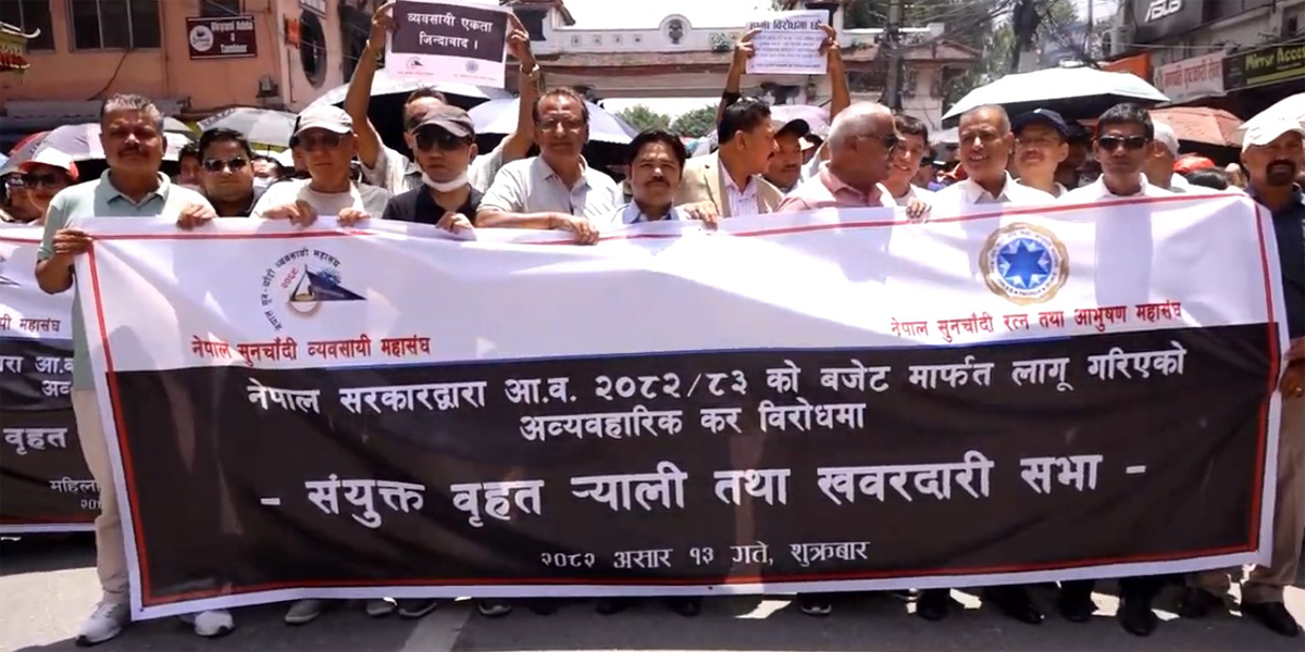 KATHMANDU: Gold and silver traders have resumed their protests, demanding the withdrawal of the luxury tax imposed on gold and silver jewellery.