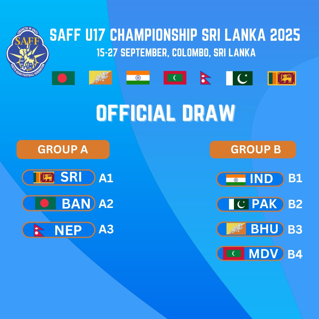 KATHMANDU: Defending champions India will face arch-rivals Pakistan in Group B of the 2025 SAFF U-17 Championship to be hosted by Sri Lanka in September.