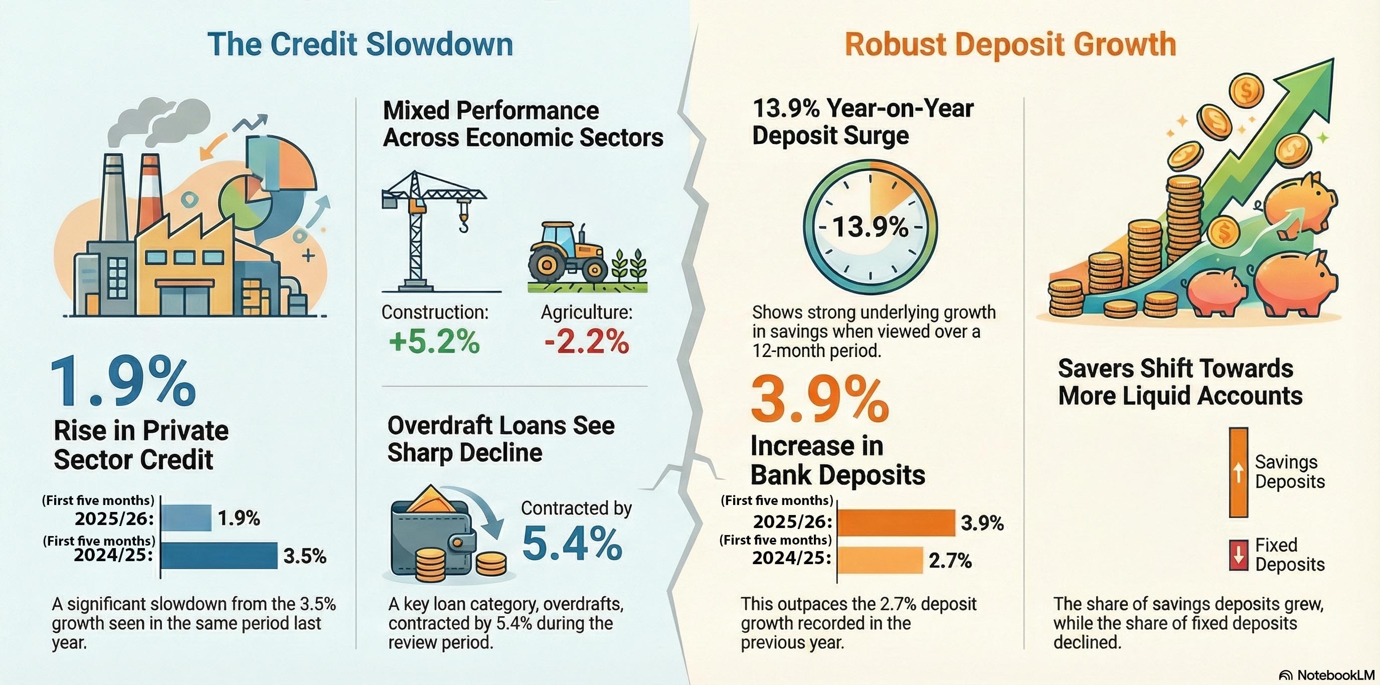 Private sector credit growth slows to 1.9%, deposits rise by 3.9%