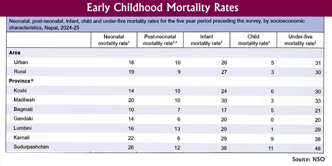 KATHMANDU: Sudurpaschim Province has the highest neonatal and child mortality rates in the country, according to a recent survey.