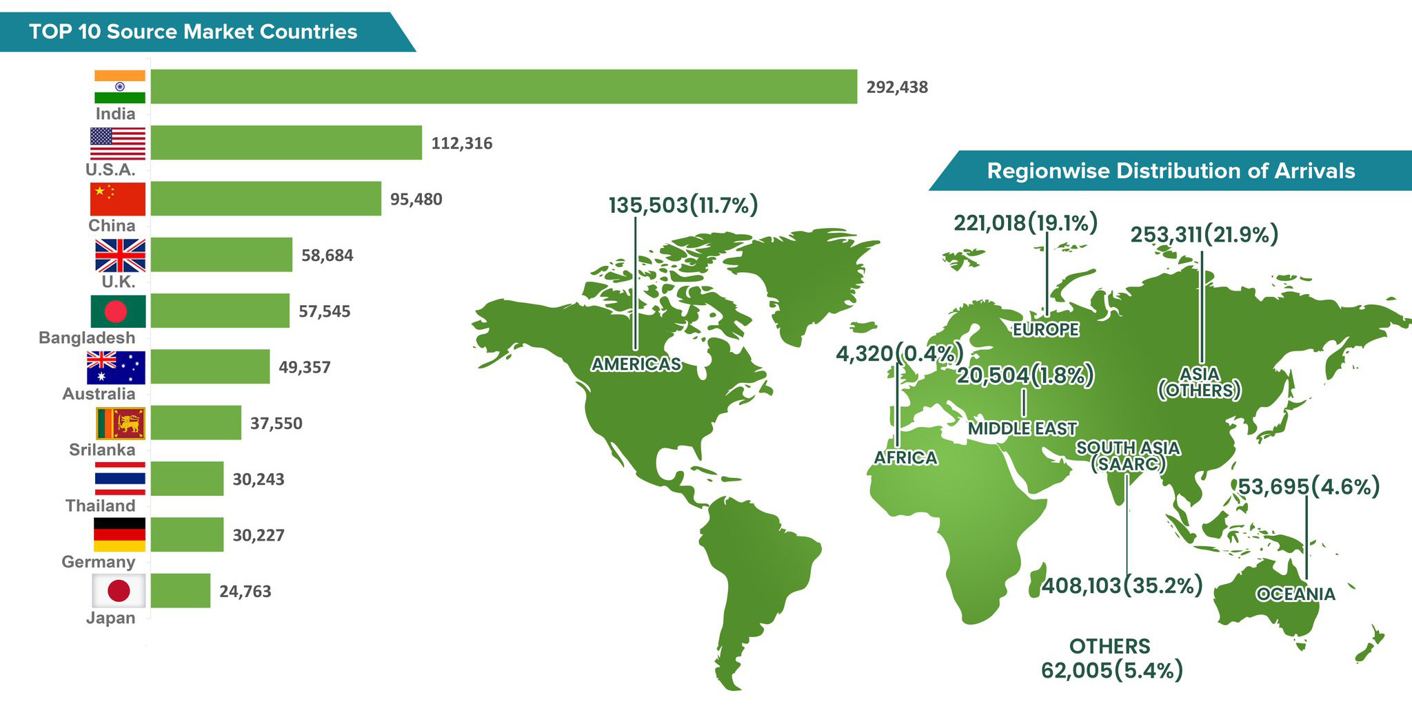 The United States came second with 112,316 visitors, while China was third with 95,480 arrivals. The United Kingdom and Bangladesh rounded out the top five, with 58,684 and 57,545 visitors, respectively.