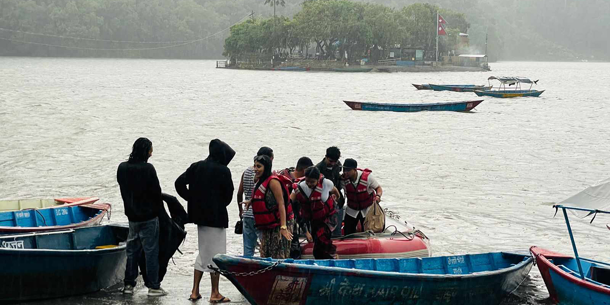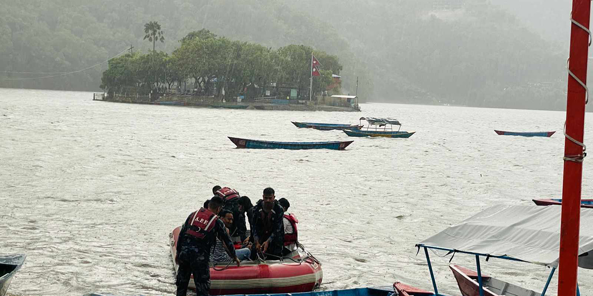 KATHMANDU: Armed Police Force (APF) Nepal personnel rescued tourists, who were left stranded on Fewa Lake due to strong winds, on Monday afternoon.