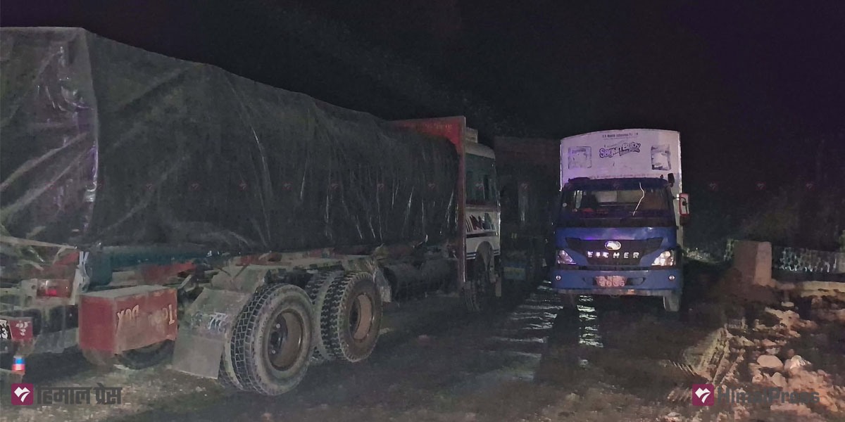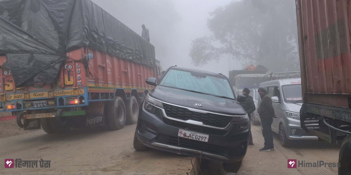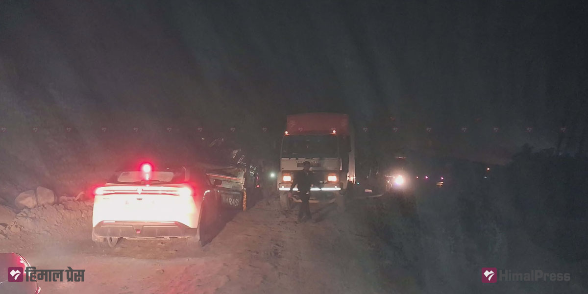 According to Police Sub-Inspector Gyan Prasad Kafle of the Area Police Office, Dumkibas, a long queue of vehicles formed after the road became slippery. “The problem had been seen since Sunday, but the road came to a complete standstill on Monday evening,” he said.