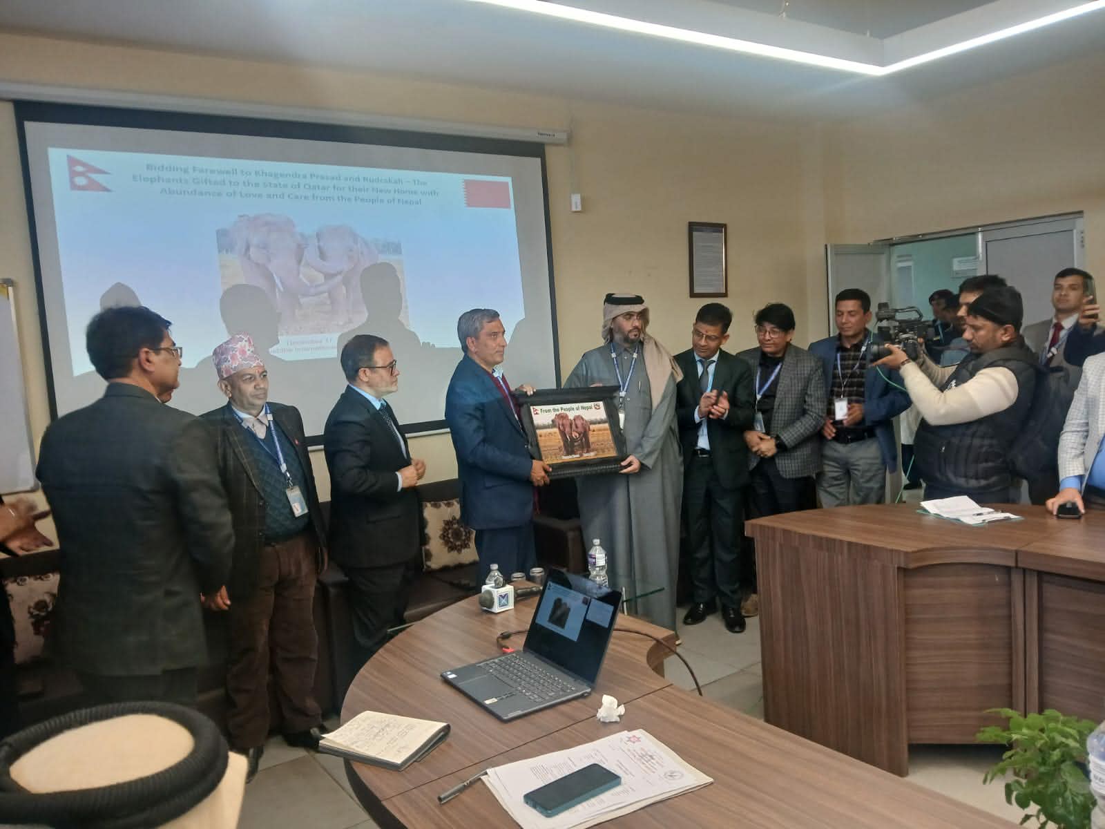 Earlier, the tuskers were formally handed over to a senior official of the Embassy of Qatar in Nepal by Dr Rajendra Prasad Mishra, Secretary at the Ministry of Agriculture and Livestock Development; Ramkaji Khadka, Joint Secretary at the Ministry of Foreign Affairs; and Chiran Jivi Pokharel, Director at the National Trust for Nature Conservation.